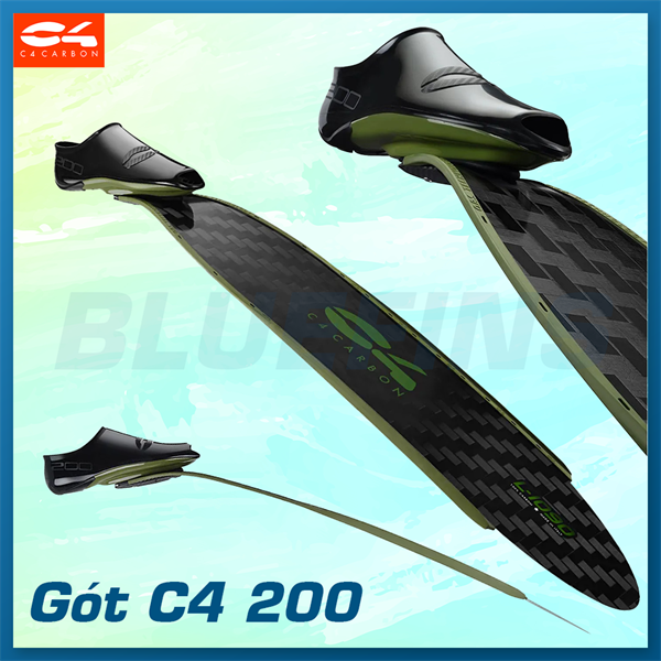 Fins specific for deep fishing, featuring an hydrodynamic anti-turbulence flap. They feature blades in three different hardnesses: 25 (soft), 30 (medium) and 35 (medium-hard). The surface finish of the blades is carbon fiber with a military green decoration. The blades are paired with shoes with a black upper and a military green shoe sole. The water rails are military green.